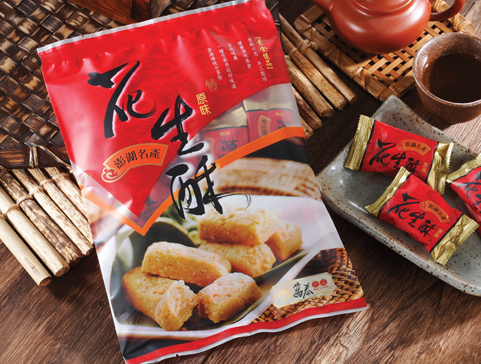 將精選過的上品花生炒過,與溶解的麥芽糖混合後,即成花生酥,然後壓平、切塊、包裝。萬泰的花生酥風味極佳,嚐一口您就可以得到無法言喻的喜悅與滿足。