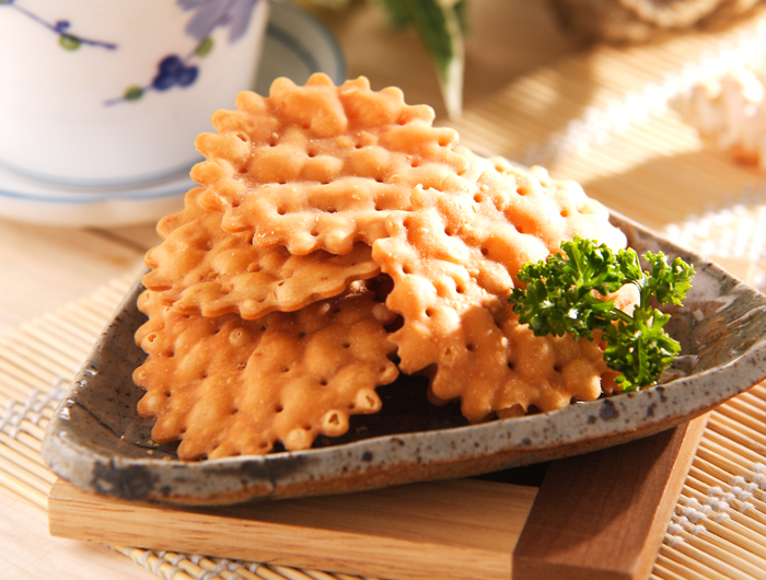 傳統餅乾的氣味,炸得酥脆透徹,鹹香的口感,外觀看似一朵綻放的菊花,這就是「菊花餅」之名的由來,一種懷舊的澎湖味風味。