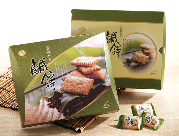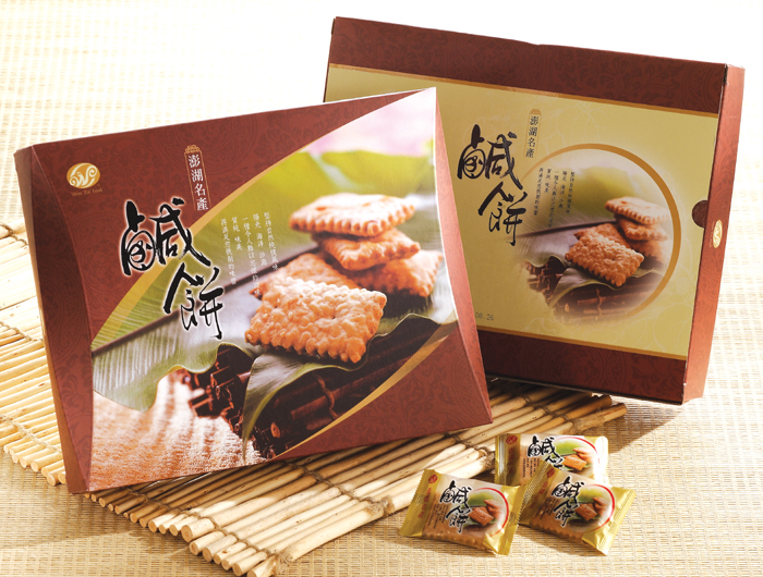 澎湖鹹餅的美味主要是來自澎湖道地芹菜和植物油之間的調味,香味中帶點胡椒嗆,咬起來酥脆,落得一攤餅屑,這就是澎湖打響知名度的在地特產─鹹餅。